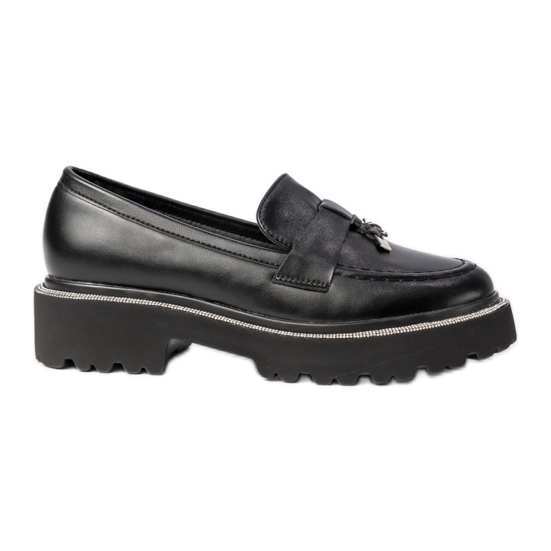 Detalhes: Mocassins pretos de couro eco feminino com Frendzla