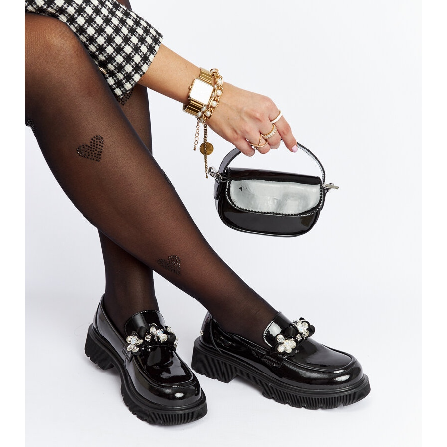 Os mocassins de couro lacado preto GOE NN2N4200 são um modelo único que combina elegância com estilo moderno. A biqueira redonda confere um caráter sutil e o acabamento laqueado deixa o calçado fenomenal, refletindo a luz e chamando a atenção. Uma vantagem adicional são os strass decorativos, que conferem elegância e os tornam perfeitos para diversas ocasiões.