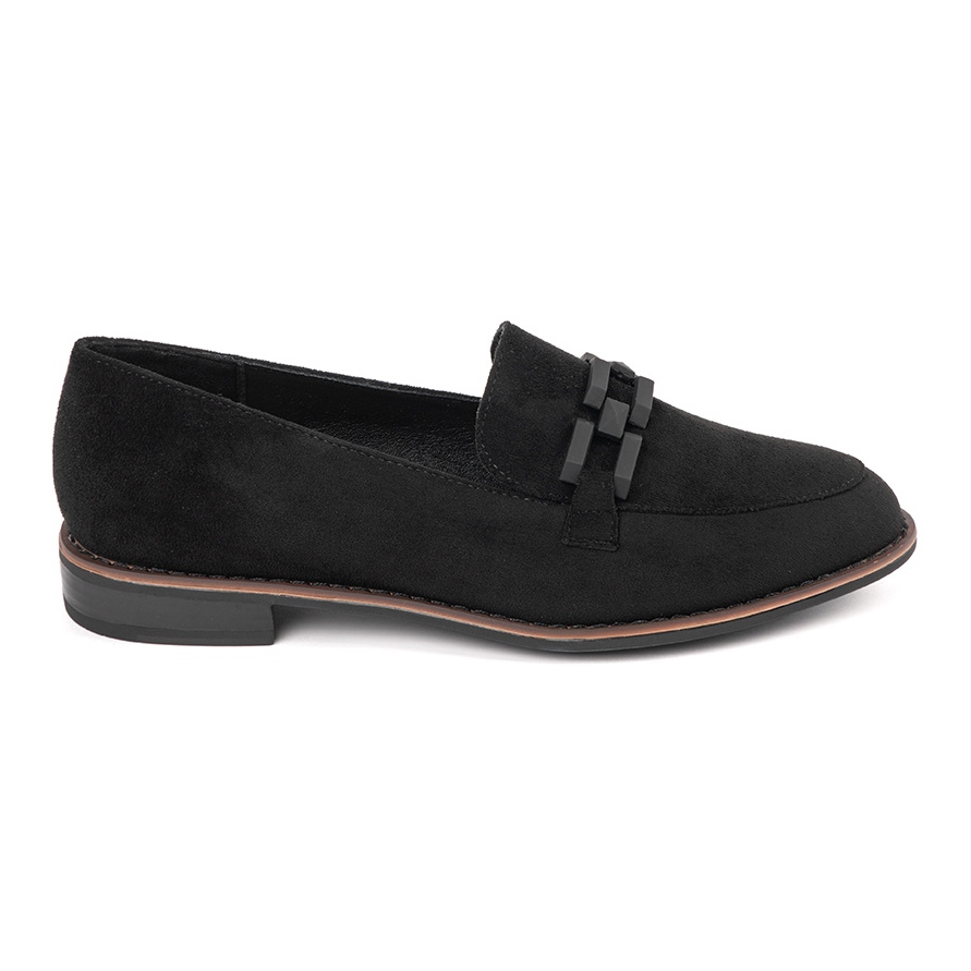 Mocassins de camurça com uma corrente preta de Sergio Leone é uma proposta ideal para mulheres que desejam combinar a elegância com o conforto diário. Sua cor preta clássica faz com que eles se tornem uma adição extremamente universal que combina perfeitamente com inúmeras estilizações - casual e mais formal.