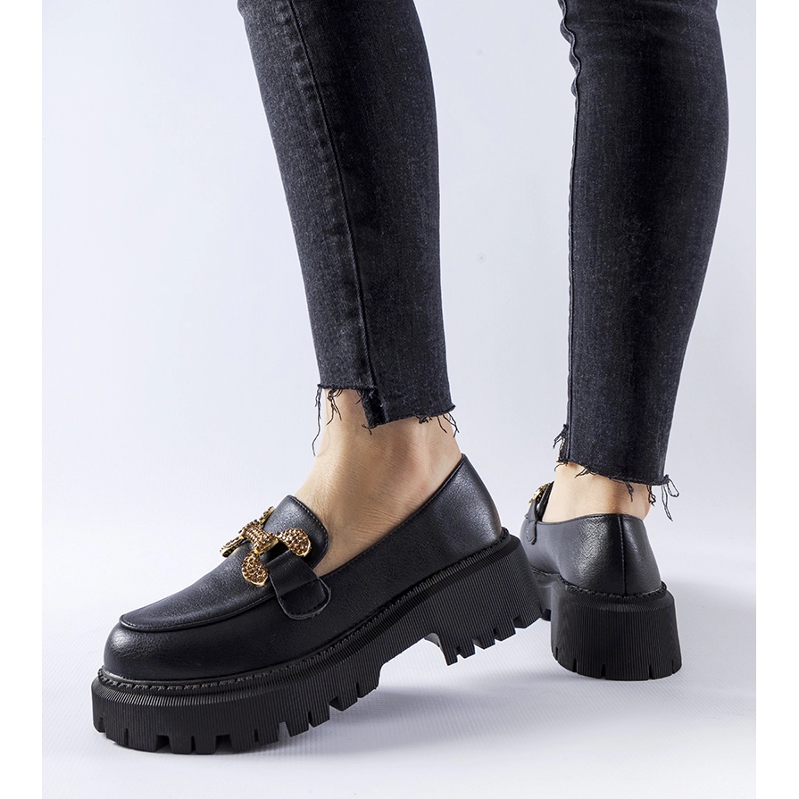 - Modelo: H8-309 Mocassins pretos decorados com zircões