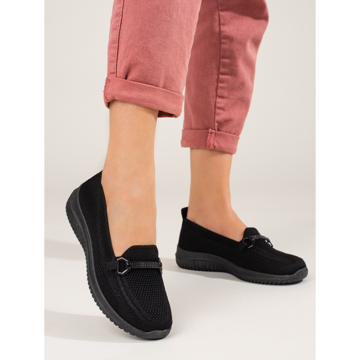 - Modelo: Mocassins têxteis pretos de mulher