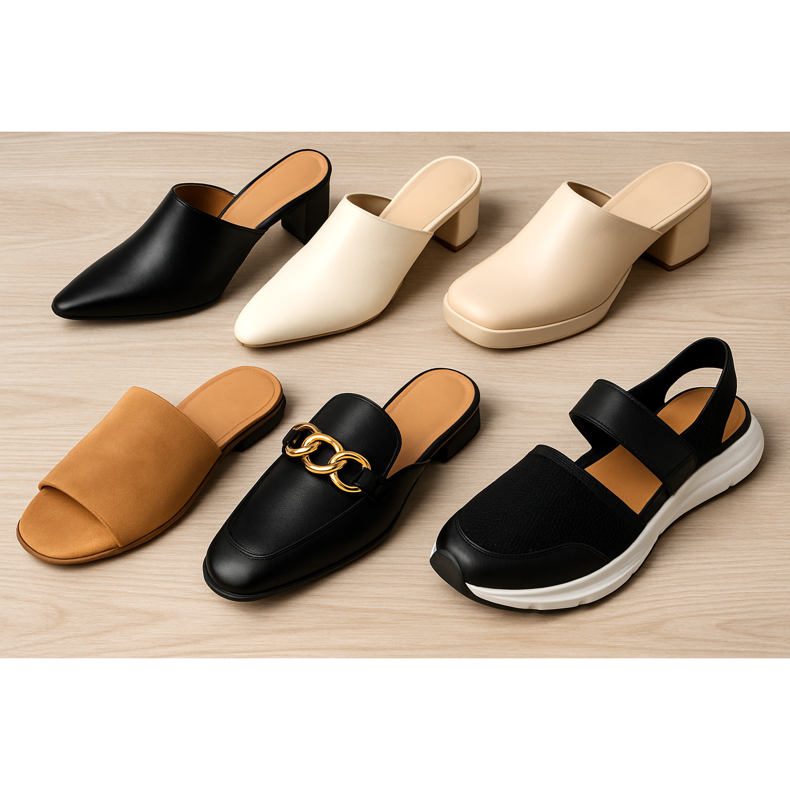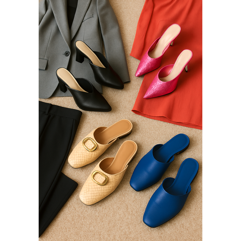 O mundo dos escritórios Mules é extremamente diverso, oferecendo modelos para todas as ocasiões e estilo. Os saltos presos clássicos são uma escolha para as mulheres que valorizam a elegância - uma altura de 5-7 cm fornece uma figura pequena sem carga excessiva do pé. Os mexilhões planos são perfeitos para escritórios casuais de código de vestimenta, oferecendo o máximo conforto durante longos dias úteis. As mulas na plataforma estão se tornando cada vez mais populares, o que adiciona centímetros de altura, mantendo a estabilidade. Para os amantes do minimalismo, foram criados um mexilhão escandinavo - linhas simples, cores neutras e couro de alta qualidade. Por sua vez, mexilhões com fivelas ou correntes decorativas são uma proposta para os corajosos que desejam adicionar o caráter de sua estilização do escritório. Vale a pena prestar atenção às mulas híbridas - combinando elementos de calçados esportivos com design elegante, ideal para profissionais dinâmicos. Os materiais também são importantes: o couro natural garante durabilidade e elegância, camurça adiciona texturas e materiais sintéticos modernos oferecem facilidade de cuidados e variedade de cores.