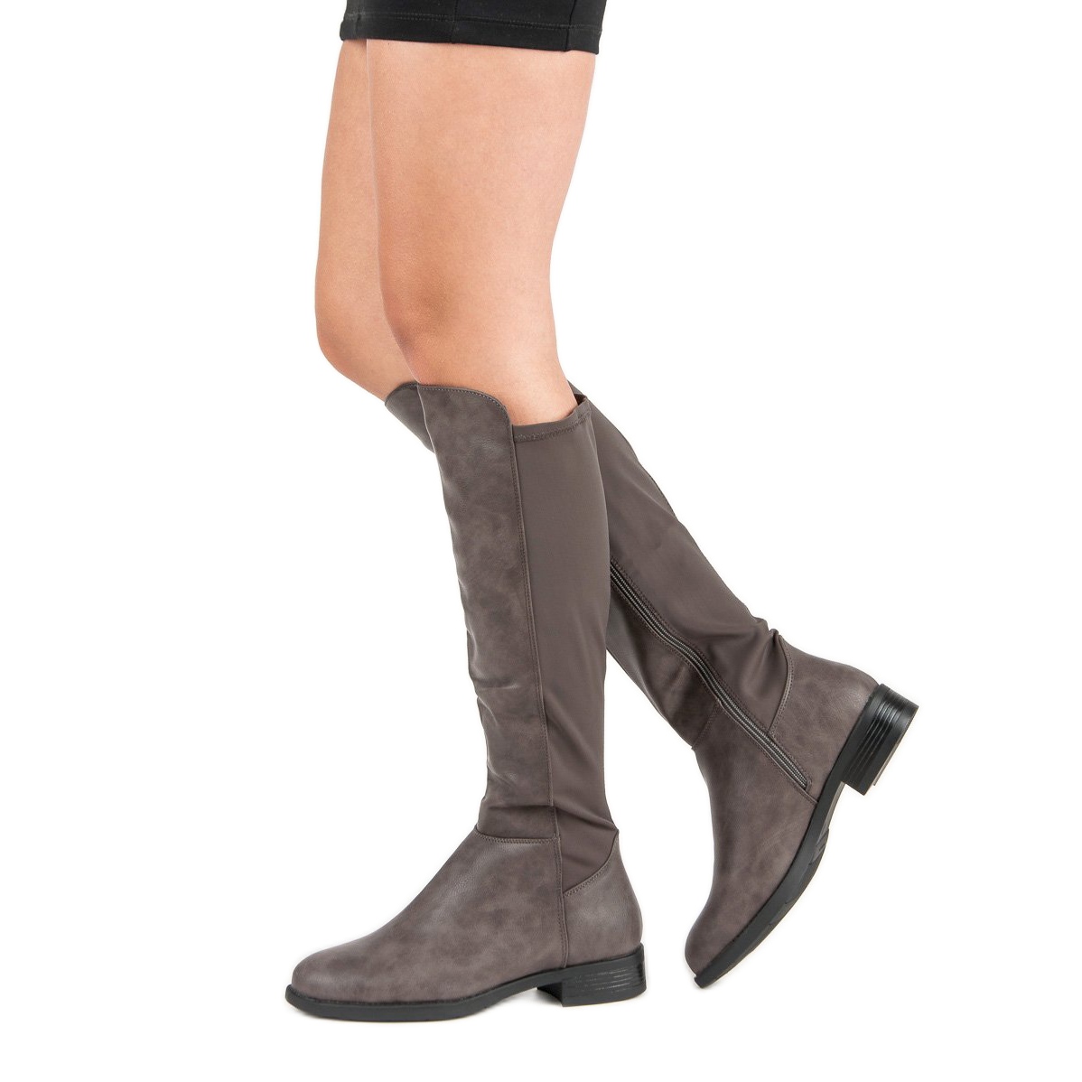 Os mosqueteiros cinza são sapatos extremamente estilosos e elegantes que complementam perfeitamente o guarda-roupa de qualquer mulher. Estas botas intemporais que chegam acima do joelho não só chamam a atenção, mas também protegem eficazmente contra o ar frio, tornando-as uma escolha ideal para o outono e inverno.