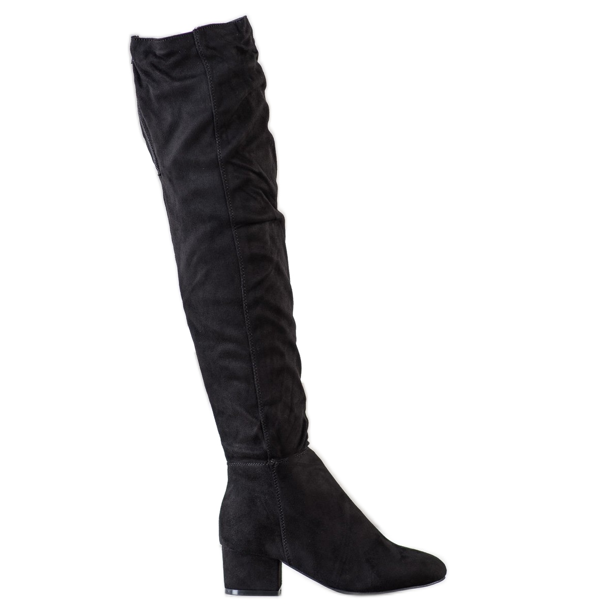 Feitos de couro camurça ecológico de alta qualidade, os mosqueteiros têm um visual extremamente estiloso e sua cor preta profunda combina perfeitamente com qualquer estilo - do casual ao elegante para ocasiões especiais. A biqueira redonda e o isolamento garantem conforto de uso, o que os torna a escolha ideal para os dias mais frios.