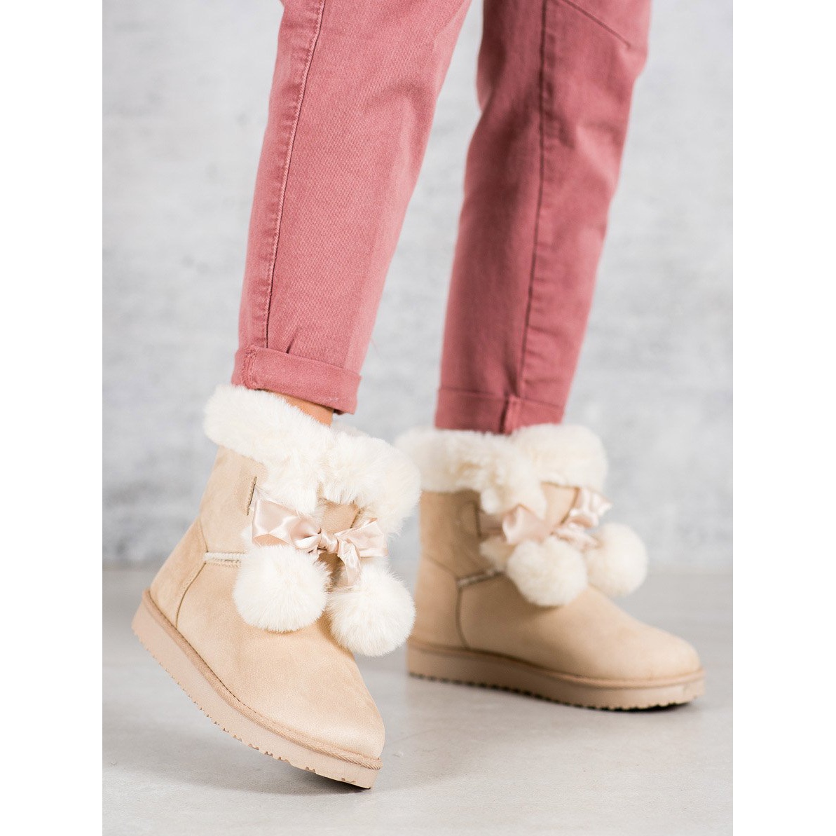 Mukluks têm um design original e slip-on, e pompons atraentes adicionam charme feminino. Colocar e tirar sem problemas torna-os uma excelente escolha para o uso diário, tanto para passeios pela cidade como para passeios casuais.