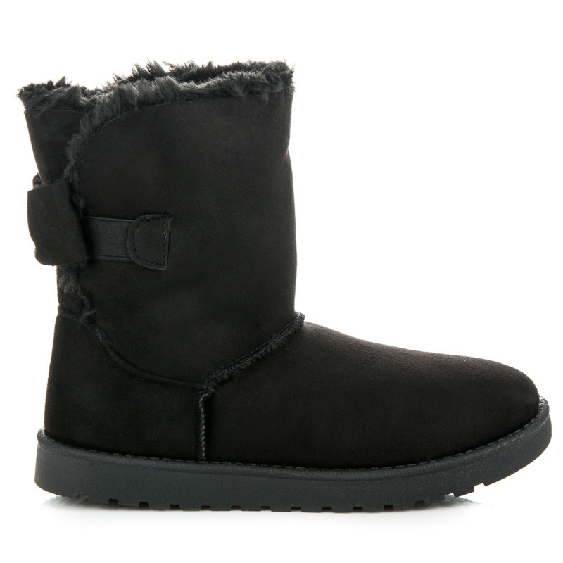 Os mukluks de camurça com laço na cor preta são a combinação perfeita de aconchego, conforto e estilo para os dias de inverno. Estas botas altas de neve distinguem-se pela sua aparência elegante e universalidade, para que possa combiná-las facilmente com muitos estilos de inverno.