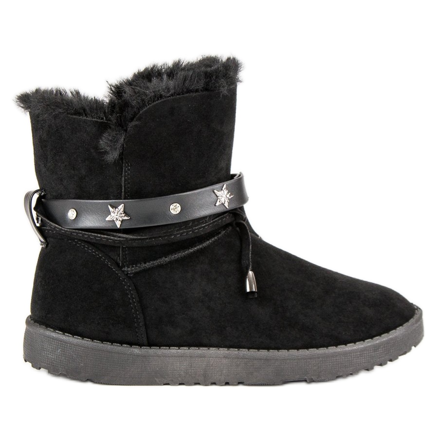 Apresentamos uma escolha perfeita para as próximas estações - Mukluks decorados na cor preta, perfeitos para mulheres que valorizam estilo e conforto. Estes elegantes sapatos são confeccionados em camurça ecológica de alta qualidade, o que garante não só um aspecto estético, mas também um cuidado com o meio ambiente.