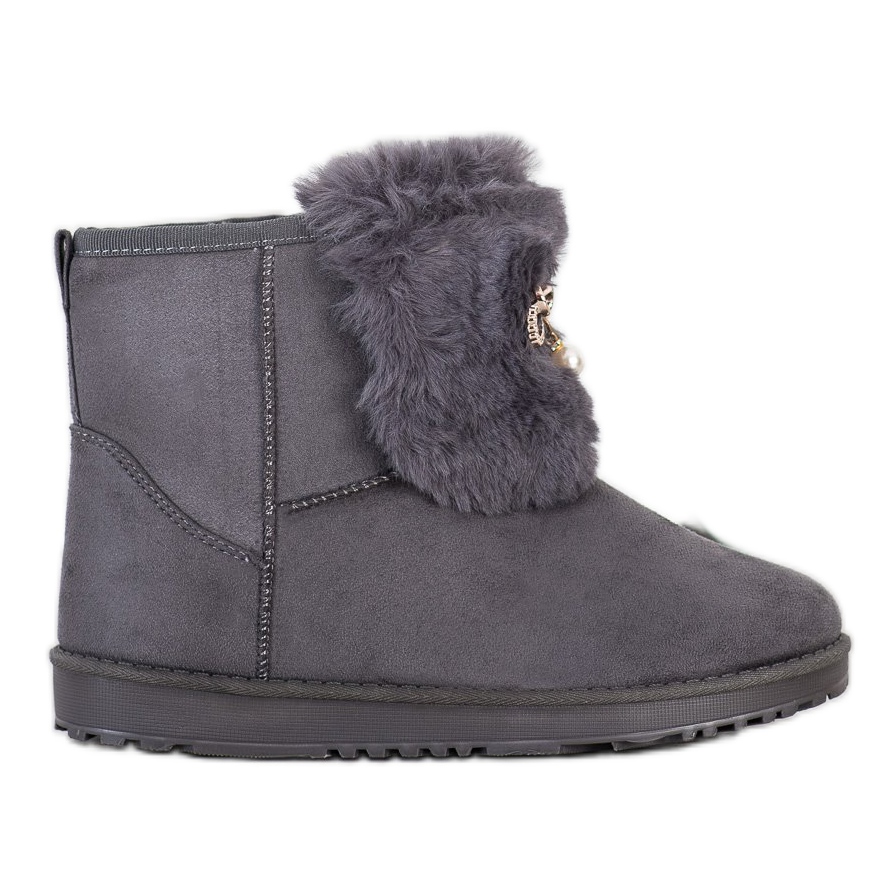 Detalhes: Queentina Mukluki quente com enfeite cinza