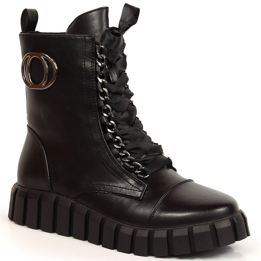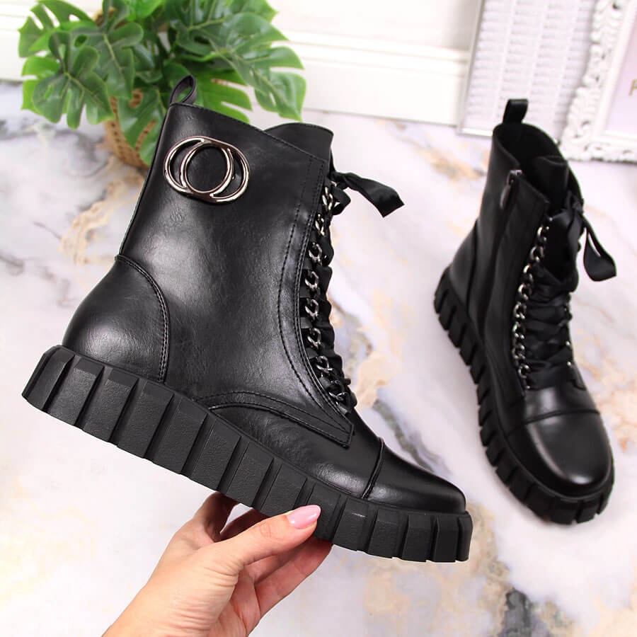 Este modelo caracteriza-se por uma biqueira clássica e redonda e um prático fecho com zíper e cadarço, que facilita a colocação e o ajuste ao pé. A sua cor preta universal faz com que combinem perfeitamente com vários estilos - desde jeans casuais a vestidos elegantes.