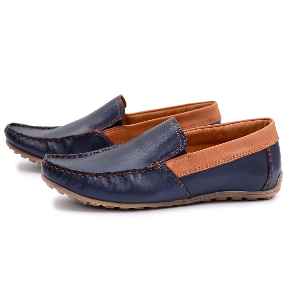 Detalhes: Neex | Mocassins masculinos de couro azul marinho com perdão