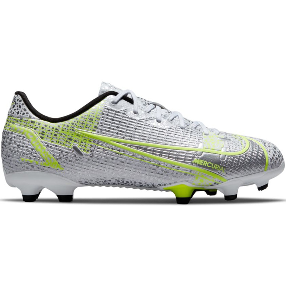 Nike Mercurial Vapor 14 Academia FG/mg júnior cv0811 107 - rápido, leve e pronto para brincar na grama natural e artificial. O modelo da coleção Mercurial Silver Safari foi projetado para jovens jogadores que precisam de algum contato com a bola e a dinâmica na aceleração.
