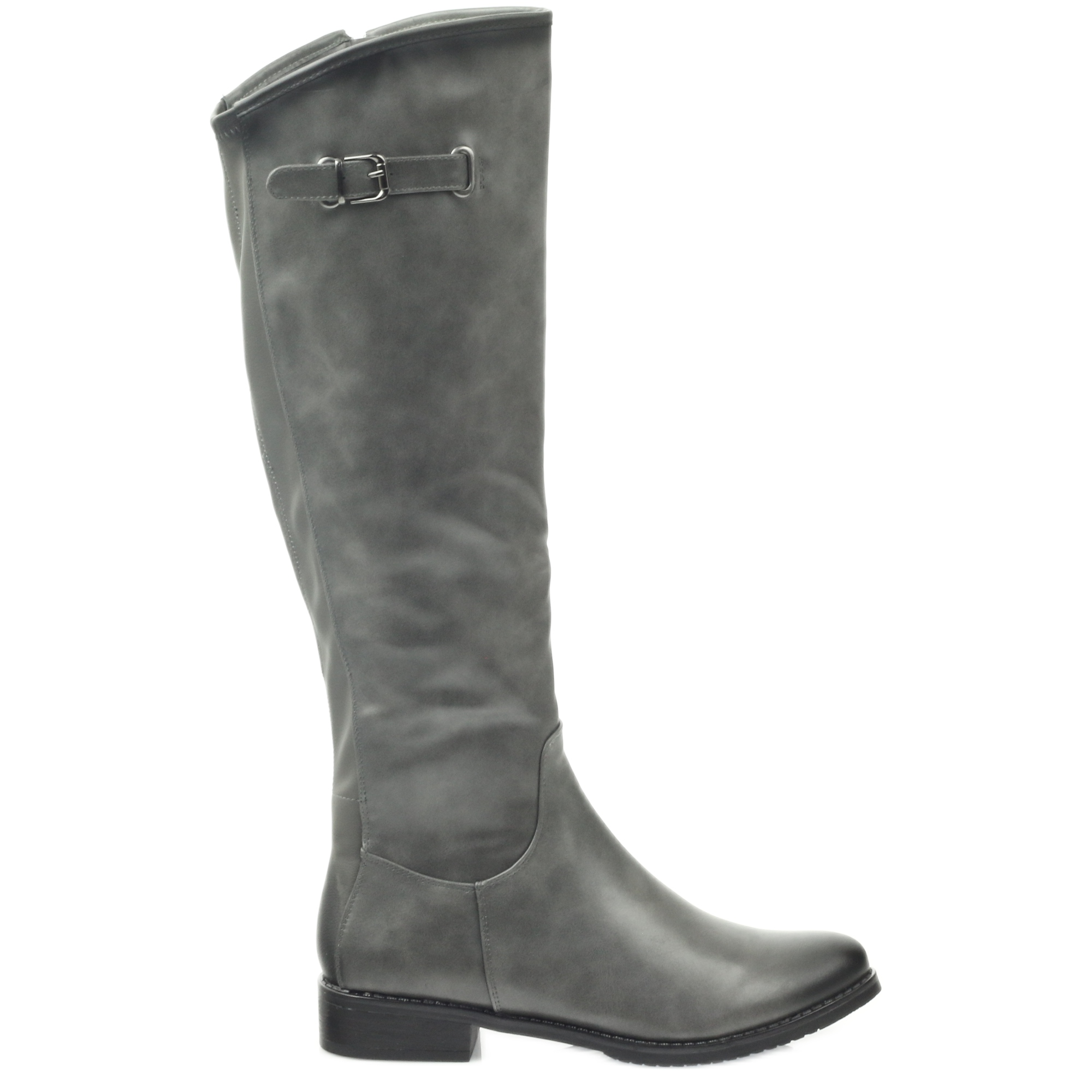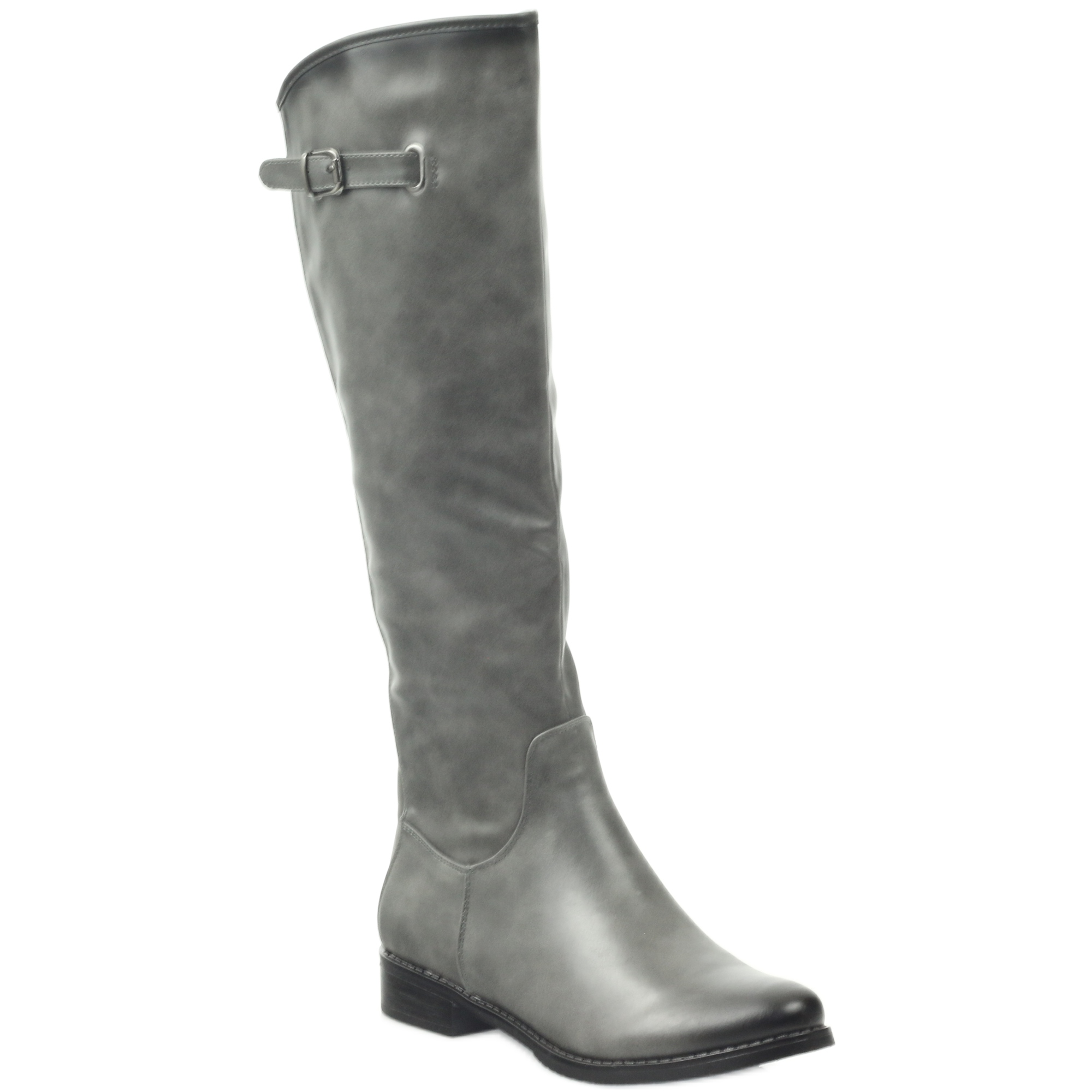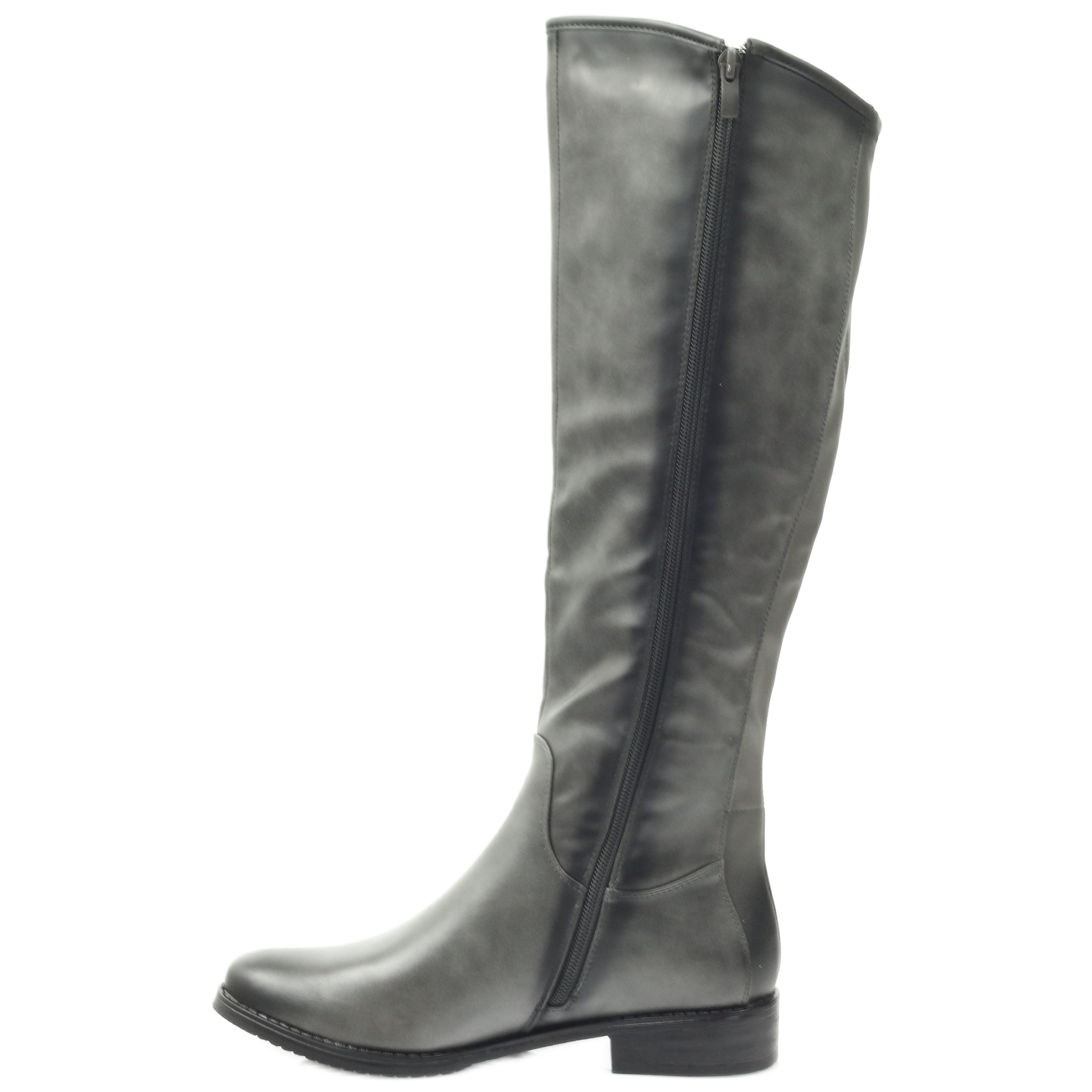 As botas têm cano de aproximadamente 45 cm, o que significa que chegam até os joelhos, e sua circunferência é de aproximadamente 38 cm. Este estilo não apenas molda lindamente a figura, mas também se adapta perfeitamente aos estilos do dia a dia e aos mais elegantes. Caracterizam-se por salto plano de 3 cm de altura e bico redondo, o que garante conforto de uso o dia todo.