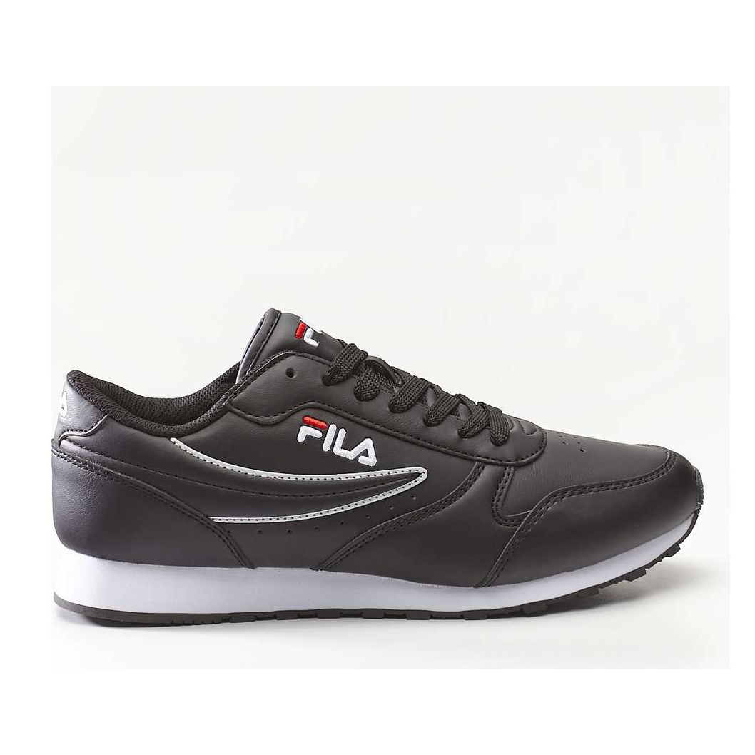 Fila Orbit Low 25y Black - tênis clássicos e pretos com um perfil baixo que combina um personagem esportivo com a elegância cotidiana. Graças à cor universal e ao login discreto, eles combinarão com muitos estilos - desde a aparência da cidade até o casual até o trabalho.
