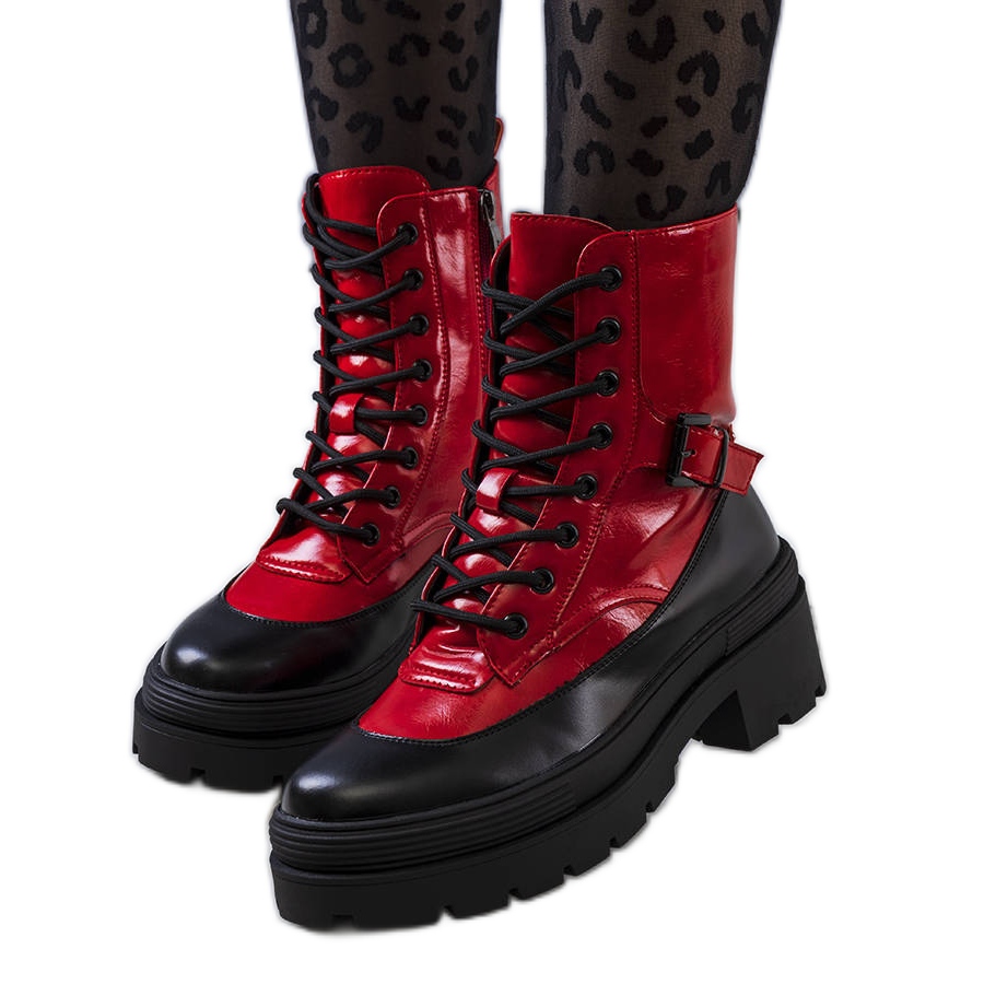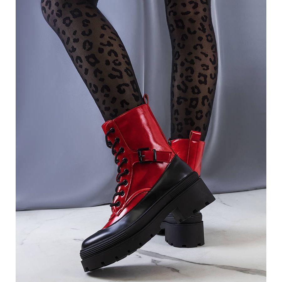 Descubra moda e conforto com as botas Norra em vermelho e preto do fabricante PA1. Estas botas elegantes são a escolha perfeita para os dias de outono e inverno, combinando design atraente com funcionalidade. Sua camada externa é confeccionada em couro ecológico de alta qualidade, o que além de valorizar sua estética, também protege o meio ambiente.