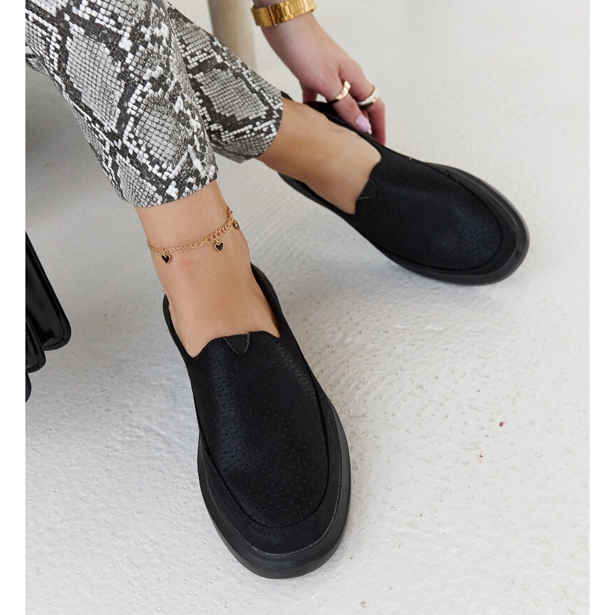 Descubra a elegância e o conforto em Black Marta, que combinam o design moderno com a praticidade. Feito de couro metálico de camurça ecológica, esses mocassins de verão darão um brilho a todas as roupas. Seu nariz redondo e delicado oferece sutileza e borracha flexível garante um ajuste perfeito para o pé, que é facilitado pelo conforto de usar o dia todo.