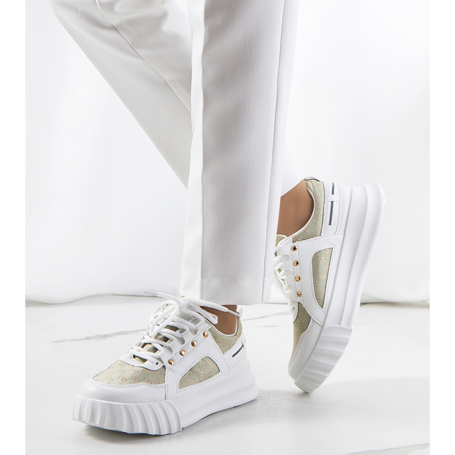 Os tênis Heleno na tonalidade verde são a escolha perfeita para mulheres que valorizam um estilo moderno e confortável para o dia a dia. Estes sapatos únicos, confeccionados em couro ecológico de alta qualidade combinado com clássicos detalhes em branco, vão certamente animar qualquer estilo de verão.