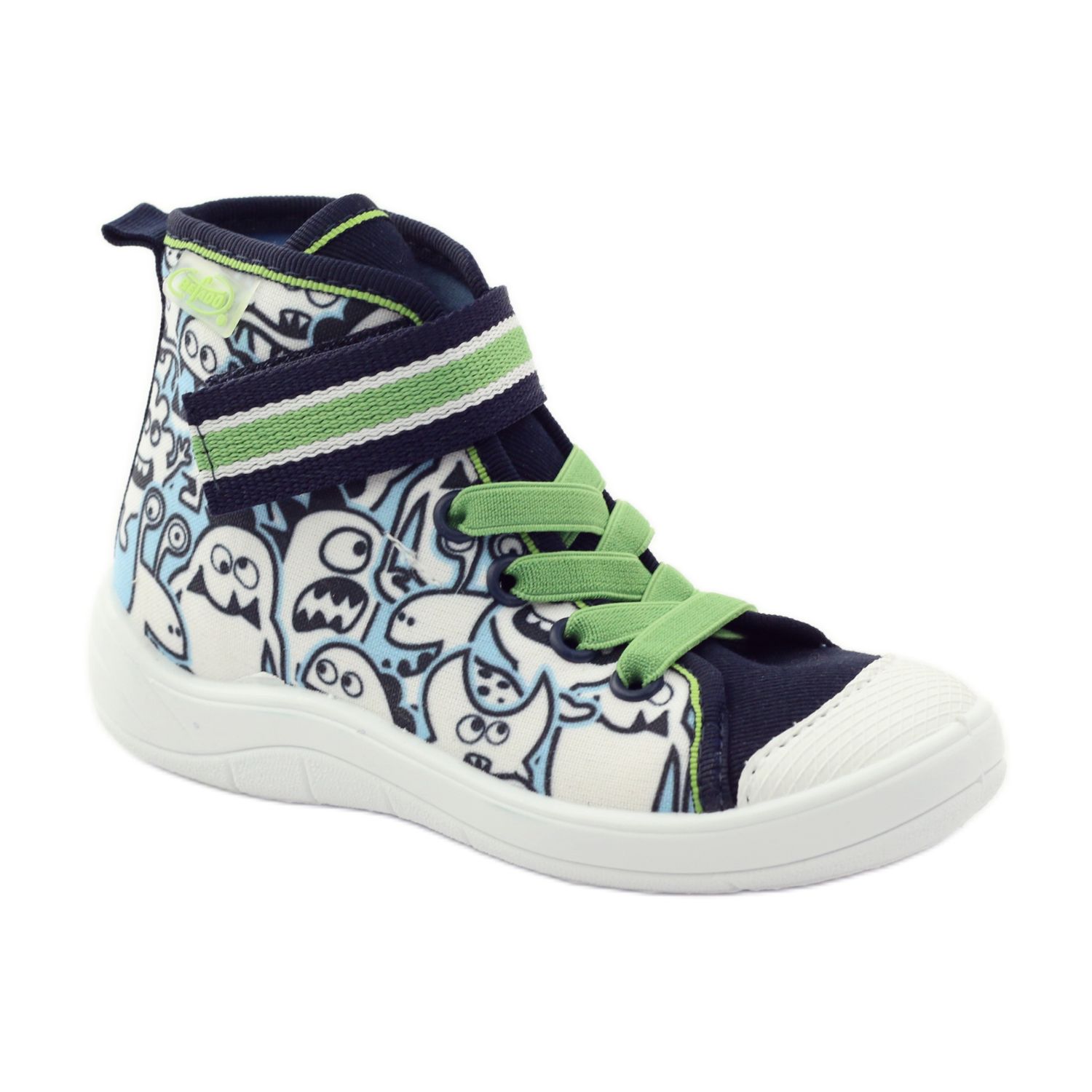 Detalhes: Padrão colorido de calçados infantis Befado 268X065 branco preto verde