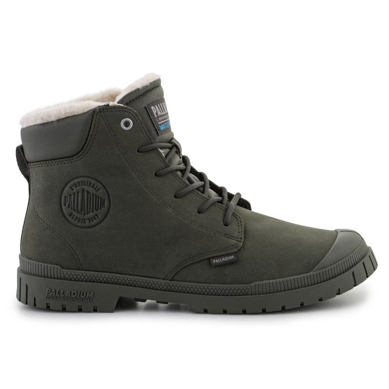 Detalhes: Palladium SP20 Cuff Couro Impermeável Wl U 79067-325-M Sapatos noturnos verde-oliva