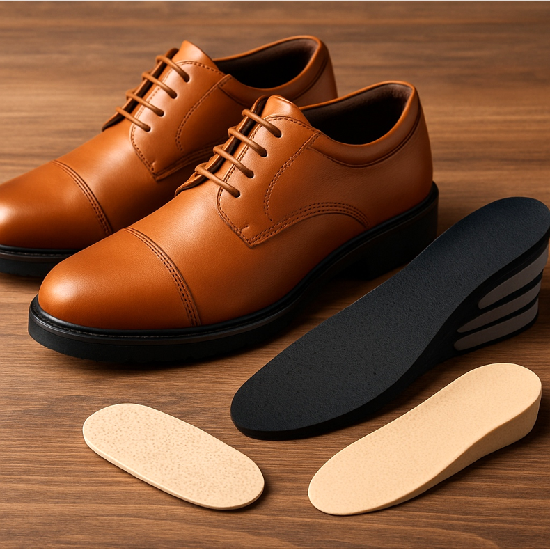 Palmilhas elevatórias acrescentam 2 a 7 cm de altura discretamente, escondidas dentro do calçado. Feito de espuma leve multicamadas ou silicone. Particularmente popular na Ásia, cada vez mais aceite na Europa. É importante escolher modelos ergonômicos com suporte de arco adequado para evitar desconforto. Inserções corretivas no calcanhar que corrigem a discrepância no comprimento das pernas, disponíveis em várias alturas (de 3 mm a vários cm). Eles ajudam a alinhar os quadris e reduzir a dor nas costas. Devem ser selecionados por um ortopedista ou fisioterapeuta, principalmente no caso de diferenças maiores de comprimento.