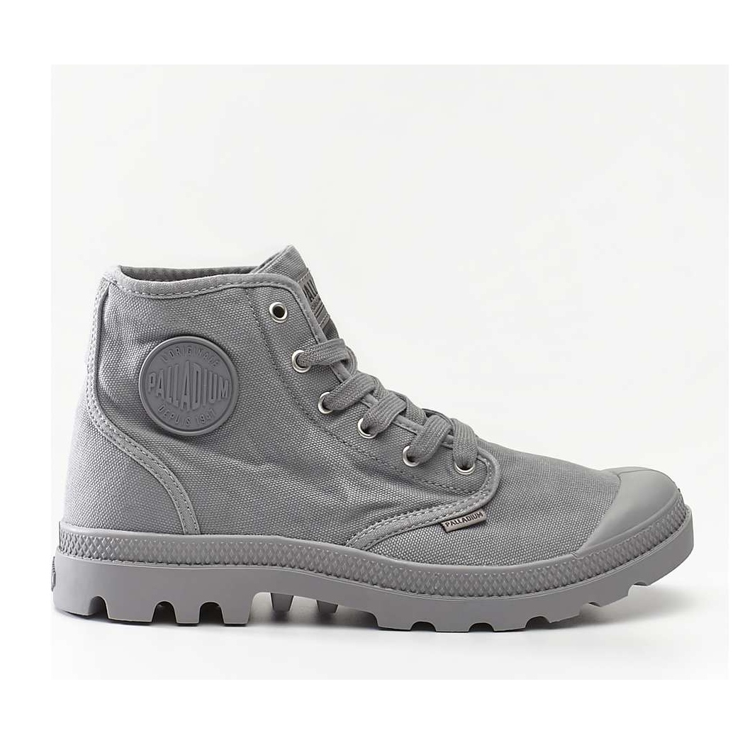 Palladium Pampa Hi 011 Titanium - sapatos clássicos e sólidos no tornozelo em uma tonalidade moderna e cinza. O modelo combina um personagem militar com estilo urbano, funcionará todos os dias e durante caminhadas mais longas.