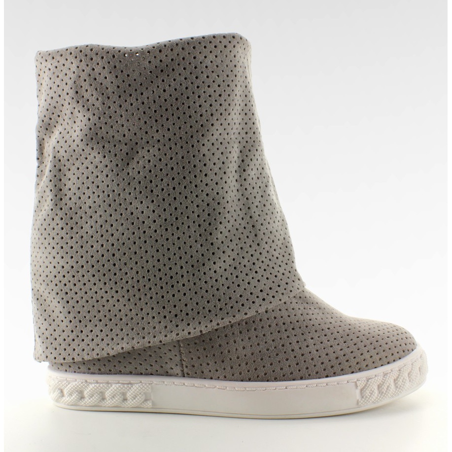Botas casadejo perfuradas com parte superior enrolada. Cinza - botins cinza com cunha oculta