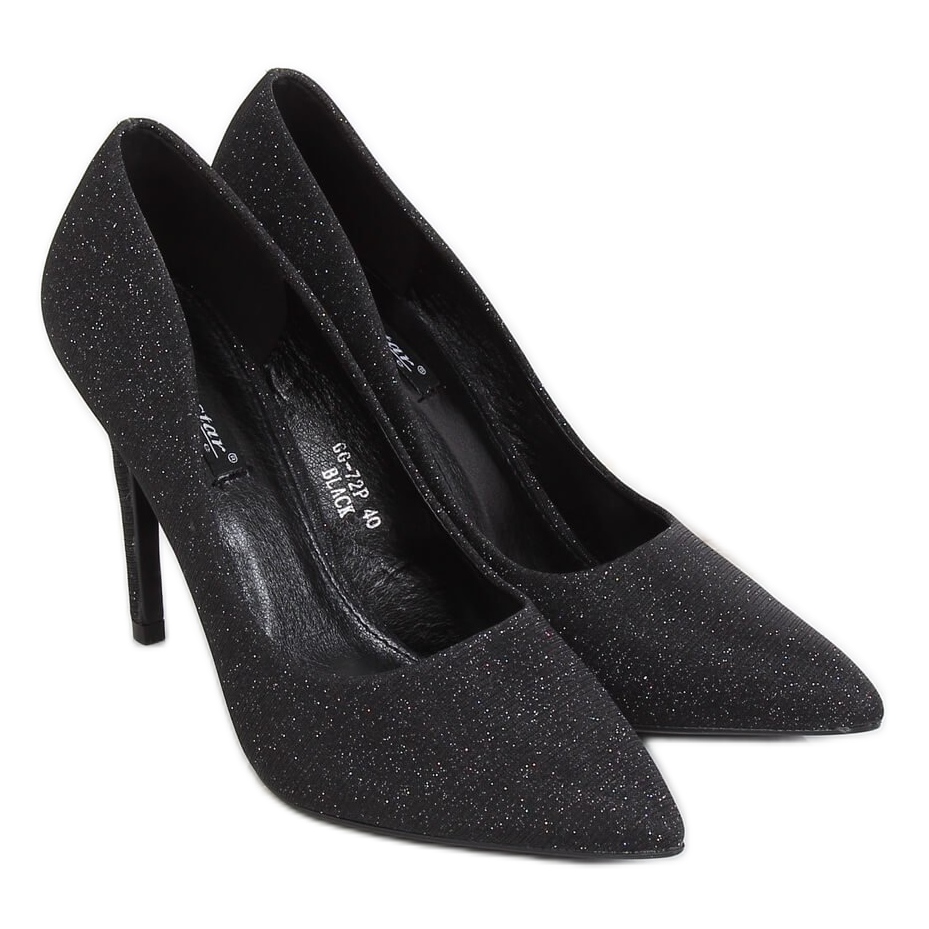 Apresentamos os saltos altos pretos iridescentes GG-72P Black - sapatos exclusivos para mulheres que querem se destacar em todas as situações. Estes deslumbrantes sapatos com salto agulha fino e impressionante altura de 10,5 cm são a escolha perfeita para quem gosta de brilhar e chamar a atenção.