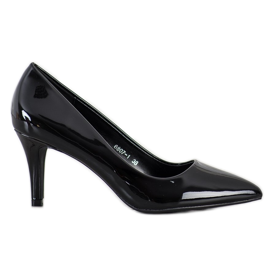 Descubra elegância e estilo clássico com salto alto Gogo preto! Esses lindos sapatos patenteados são obrigatórios no guarda-roupa de qualquer mulher. Seu material brilhante chama a atenção, agregando charme a qualquer estilo. O dedo do pé pontiagudo não apenas emagrece visualmente o pé, mas também confere à parte superior um caráter moderno e moderno.