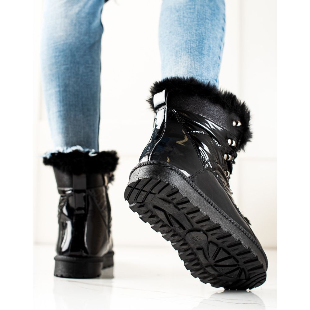 As botas de neve quentes Potocki na cor preta são a escolha perfeita para mulheres que procuram conforto e estilo nos dias mais frios. Estes elegantes botins do fabricante W. Potocki estão em linha com as últimas tendências, combinando funcionalidade com design moderno.