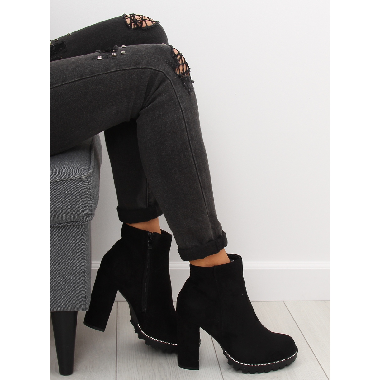 Botas femininas 58-581 Black II-Gat estilo e sensualidade com uma leve desvantagem. Feito de camurça ecológica em preto clássico, eles combinam elegância com um sotaque distinto: uma plataforma caçadora (2 cm) decorada com zircões acrescenta brilho e um calcanhar simples do pistão de 10 cm de altura aumenta opticamente as pernas. O dedo do pé de amêndoa enfatiza a linha do pé feminino, e a fixação prática do zíper ao lado facilita a instalação. O mais quente na forma de forro de espuma fornece conforto adicional em dias mais frios.