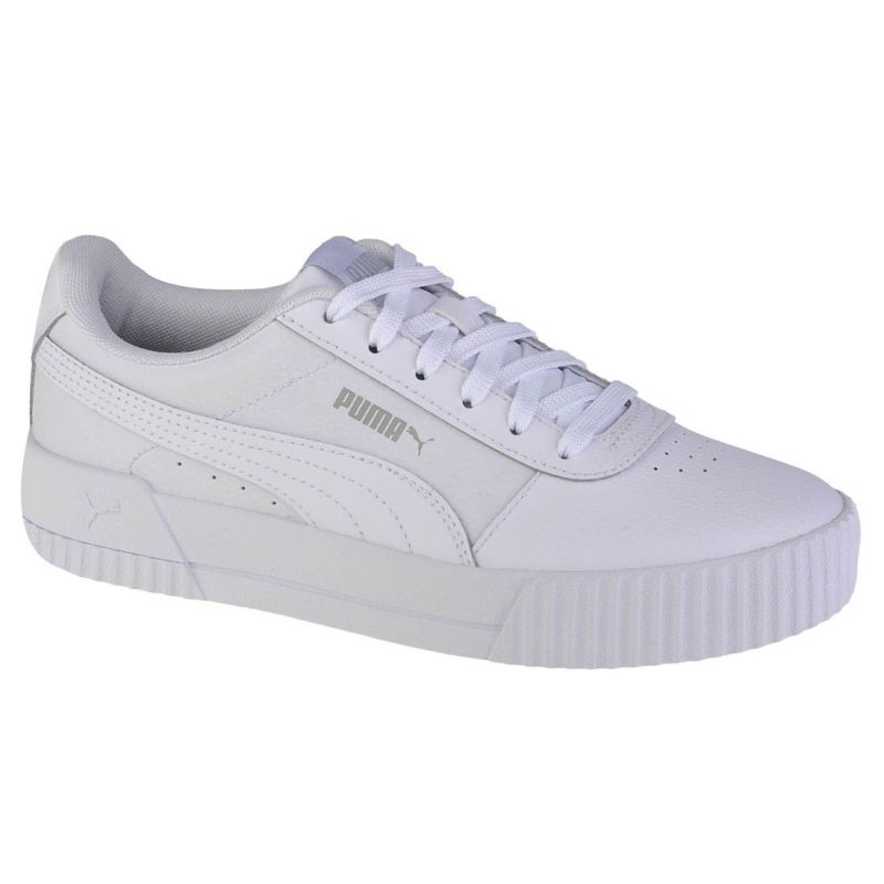 Apresentamos os calçados juvenis Puma Carina L Jr 370677-19 na clássica cor branca, perfeitos para o uso diário. Estes sapatos baixos com atacadores combinam estilo e conforto, tornando-os a escolha perfeita para meninas ativas.
