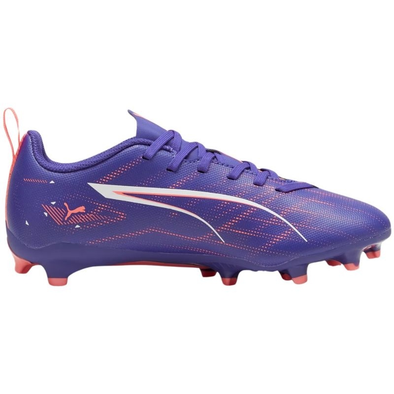 Entre novos padrões no jogo graças ao Puma Ultra 5 Play FG/AG Football Shoes. Esses engarrafamentos dinâmicos para crianças, mantidos em uma cor roxa da moda, fazem parte da coleção exclusiva de pacote de fórmula Puma, projetada para jovens atletas que desejam uma combinação perfeita de estilo e desempenho em campo.