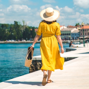 Sandálias, bem como bailarinas clássicas ou alpercatas, podem ser combinadas com vestidos arejados de verão, curtos e largos, ou mais longos.