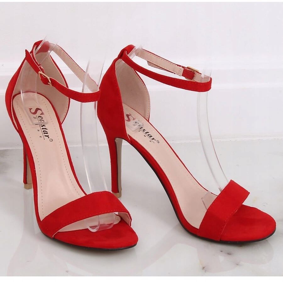 Inna marka Red GG-86P Sandálias vermelhas de salto alto vermelho