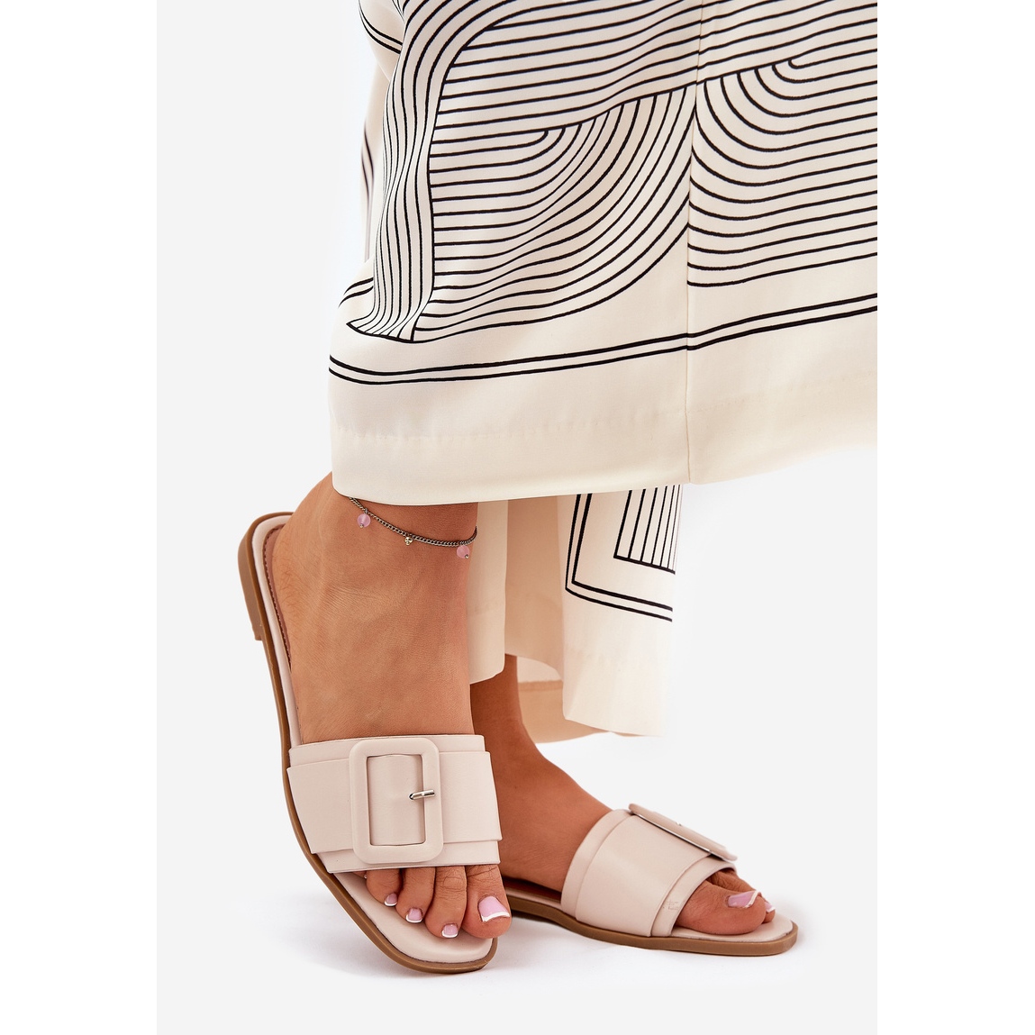 Graças à sola marrom feita de plástico durável, esses chinelos serão um ótimo companheiro durante longas caminhadas de verão. Eles têm a embalagem original do fabricante, o que os torna ótimos como um presente. Escolha chinelos femininos de couro ecológico plano com uma fivela e aproveite o conforto e o estilo todos os dias!
