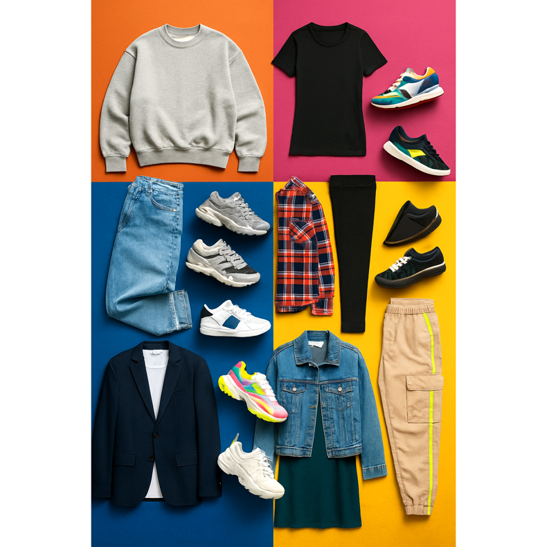 ** Look de rua **: moletom de grandes dimensões + jeans folgados + tênis grossos. Classic dos anos 90 em uma edição moderna. ** ATHLEISURE **: Leggings + camisa esportiva longa + corredores retrô. O conforto encontra estilo. ** Casual inteligente **: Terno + camiseta + tênis retrô branco. Quebrando a convenção com a classe. ** Revival grunge **: camisa de flanela + jeans sequestrado + Converse uma estrela. Rebelião no seu melhor. ** Contraste minimalistas **: Roupa monocromática + tênis robustos coloridos como um ponto focal. ** Vista -se elegância **: vestido midi + jaqueta jeans + novo balance. Equilíbrio entre elegância e solto. ** VIBES Y2K **: Acentos de néon + calças de carga + interrupção fila. Millennium Bug na moda.