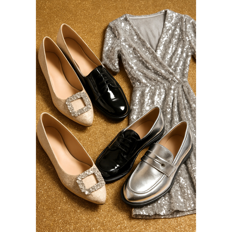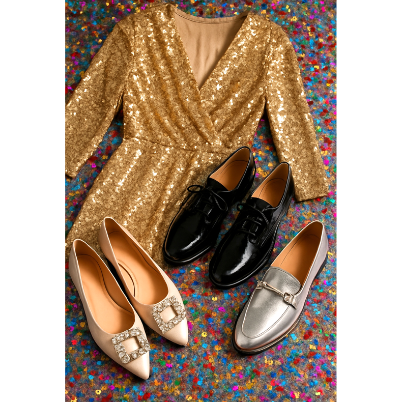 Nem todos nós amamos salto alto, especialmente quando planejamos dançar a noite toda. Confira quais sapatilhas vão fazer sucesso no Réveillon 2025/2026. Sapatilhas com joias, oxfords envernizados e mocassins metálicos - estas são as nossas escolhas para um início de ano elegante e confortável!