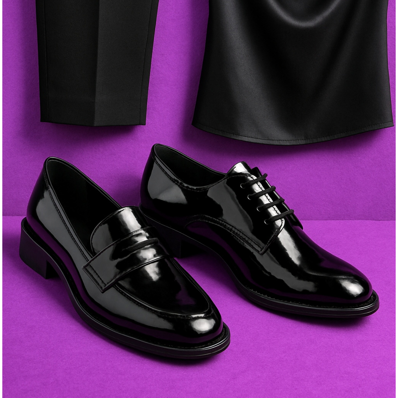 Oxfords e mocassins envernizados - elegância com um toque afiado