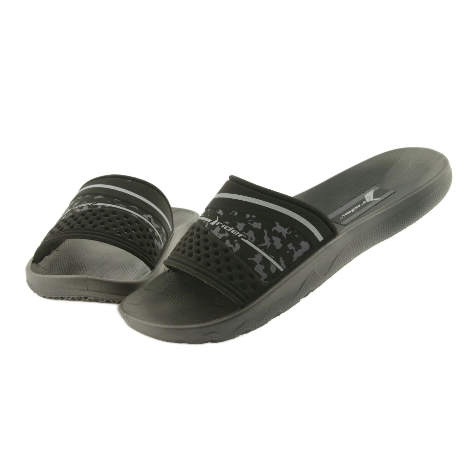 Os chinelos recreativos masculinos Rider 82499 pretos são a escolha perfeita para quem procura calçado confortável e elegante para o uso diário e viagens de verão. Fabricados em material de borracha flexível, estes chinelos caracterizam-se por um formato anatómico, que permite um ajuste perfeito ao pé. Graças a isso, o usuário pode desfrutar de conforto mesmo quando usado por muitas horas.
