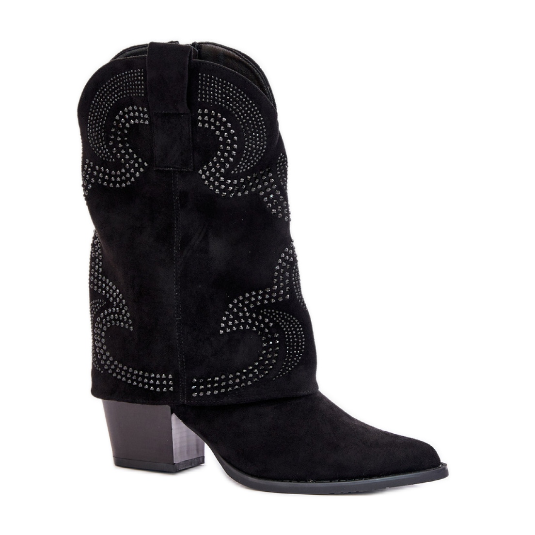 Apresentamos botas decoradas botas de cowboy feminino S. Barski preto em uma cor preta elegante - uma escolha perfeita para todos os amantes da moda! Essas botas da moda meia -malha de cowboy se destacam por uma parte superior original decorada com jatos, o que lhes dá um personagem único e faz com que se tornem um sotaque interessante de qualquer estilização.