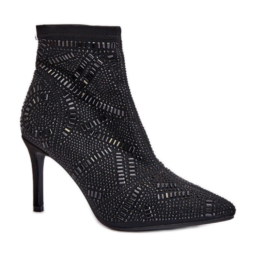 Descubra as botas femininas incomuns S. Barski Hy42-161 em uma cor preta única. Esses sapatos elegantes decorados com strass na parte superior são a escolha perfeita para mulheres que desejam adicionar brilho às suas estilizações. O modelo é distinguido por um nariz esbelto em um Spitz, que opticamente manda as pernas e faz com que cada passo nessas botas pareça extremamente elegante.