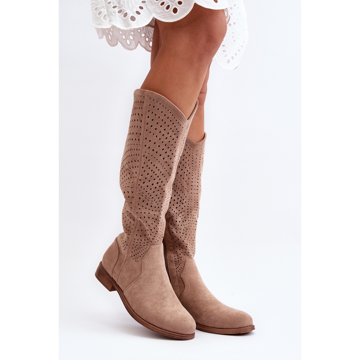 S.Barski S.barski HY66-150 Botas perfuradas com salto plano Bege