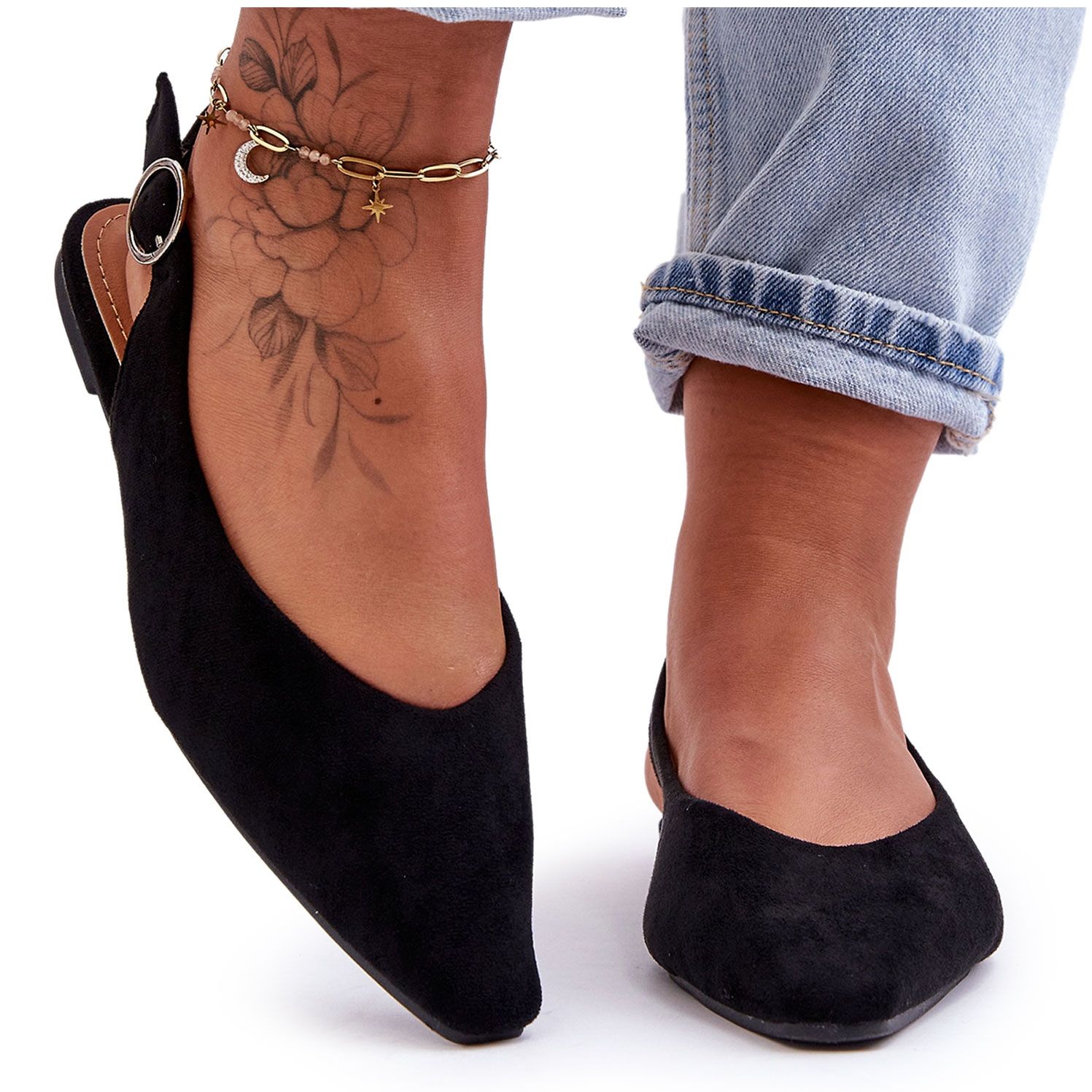 Apresentamos sapatilhas femininas exclusivas PS1 na clássica cor preta, que complementam perfeitamente qualquer estilo primavera-verão. Estes sapatos elegantes distinguem-se pelo salto aberto e pela biqueira alongada, o que lhes confere um carácter original. Feitos de camurça ecológica de alta qualidade, são elegantes e ecológicos.