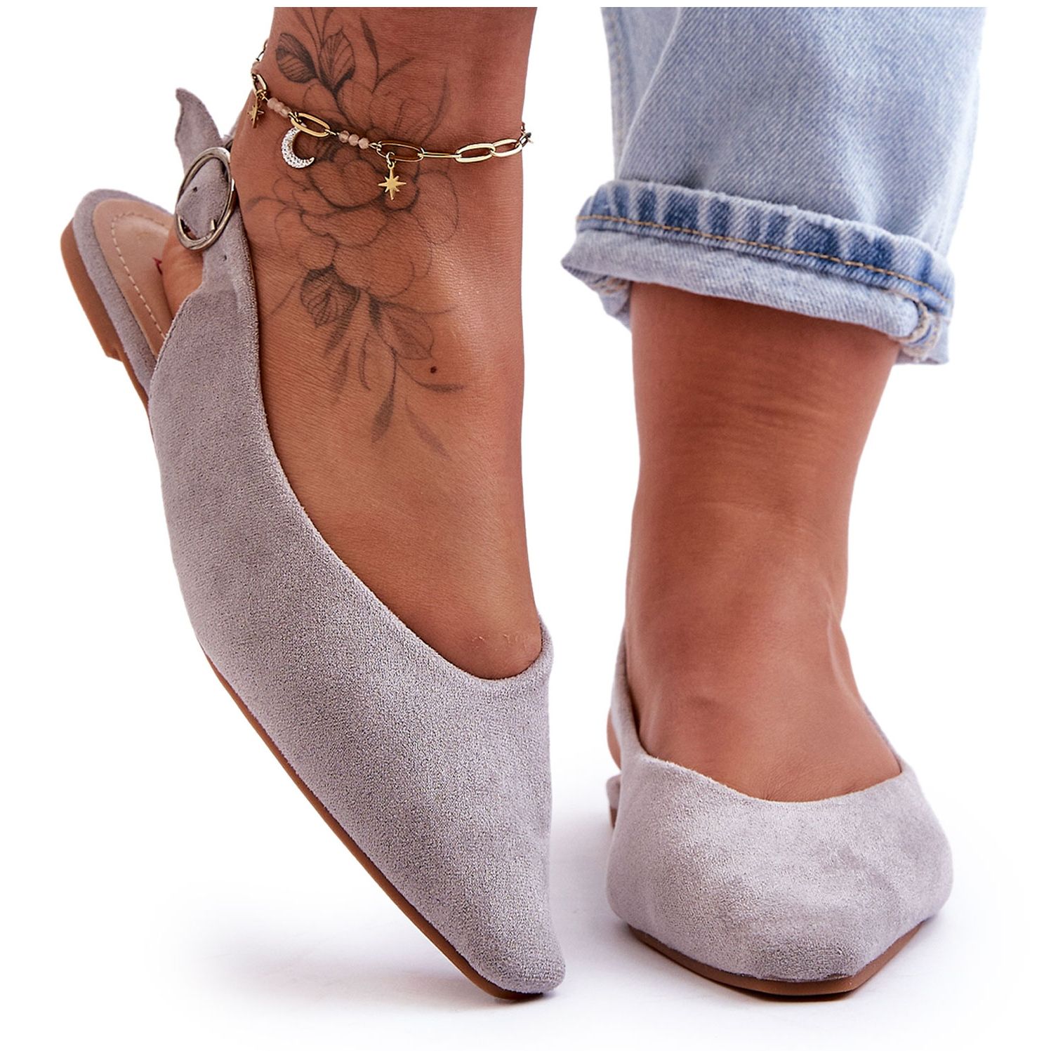 Descubra elegância e conforto excepcional com sapatilhas femininas PS1 feitas de camurça cinza. Estes sapatos elegantes com salto aberto e biqueira alongada característica são a escolha perfeita para os dias de primavera e verão. Confeccionados em camurça ecológica de alta qualidade, proporcionam não só um ótimo visual, mas também conforto de uso.
