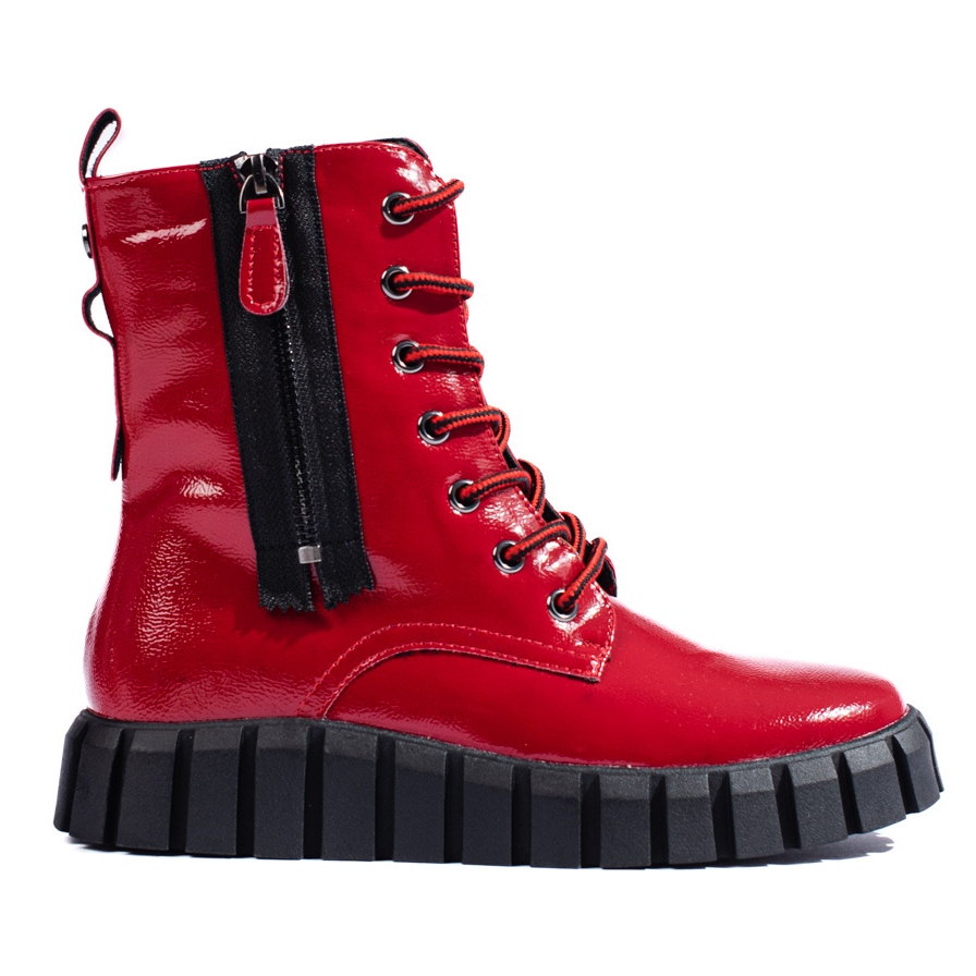 Descubra os exclusivos trabalhadores de plataforma vermelhos do fabricante W. Potocki, que combinam perfeitamente com as tendências atuais. Estes botins femininos combinam o estilo casual e rock, perfeitos para o outono/inverno. Fabricados em couro ecológico envernizado de alta qualidade, oferecem não só uma aparência atraente, mas também conforto de uso.