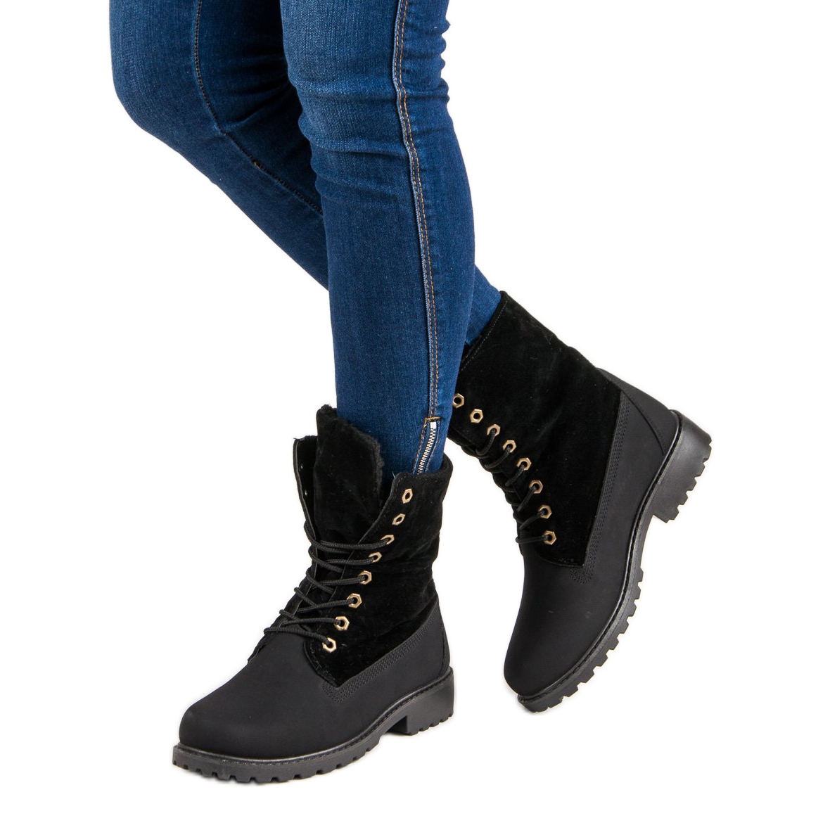 As botas de trabalho isoladas com cordões pretas são a escolha perfeita para mulheres que desejam combinar estilo com conforto. Estes sapatos da moda, que chegam acima do tornozelo, são a solução perfeita para os dias mais frios, graças ao seu isolamento que garante calor e conforto. Fabricados em camurça e couro ecológicos, os trabalhadores são ecologicamente corretos e seu cuidado é fácil.