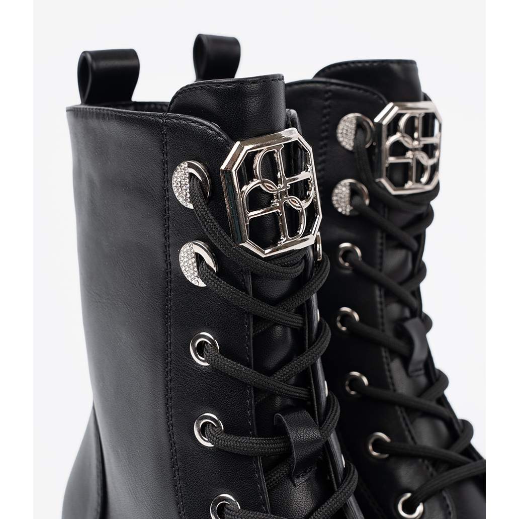 Descubra a nova dimensão do estilo com os trabalhadores da renda -Up Shelvt, que são a combinação perfeita de conforto e design de moda. Essas botas das mulheres negras são uma ótima opção para todas as ocasiões, graças ao estilo casual e rock. Feito de couro ecológico de alta qualidade, com atenção aos detalhes, eles ficarão ótimos em combinação com várias roupas.