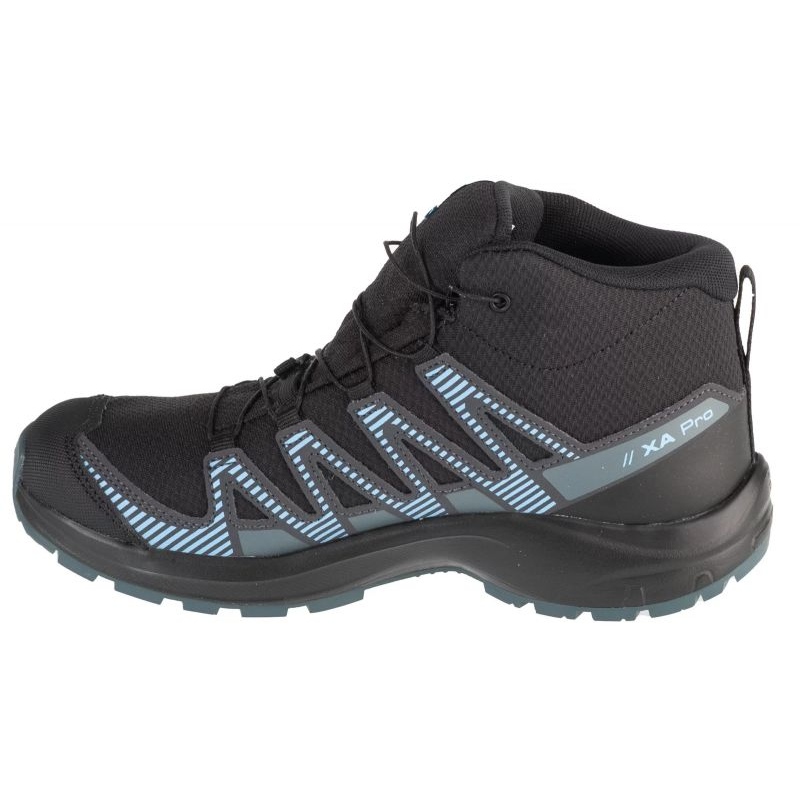 Prepare -se para uma emocionante aventura na trilha com os sapatos de trekking femininos Salomon Xa Pro V8 Mid CSWP de preto com detalhes em azul. Esses sapatos de alta qualidade são ideais para pessoas que valorizam conforto, força e excelente adesão em várias superfícies.