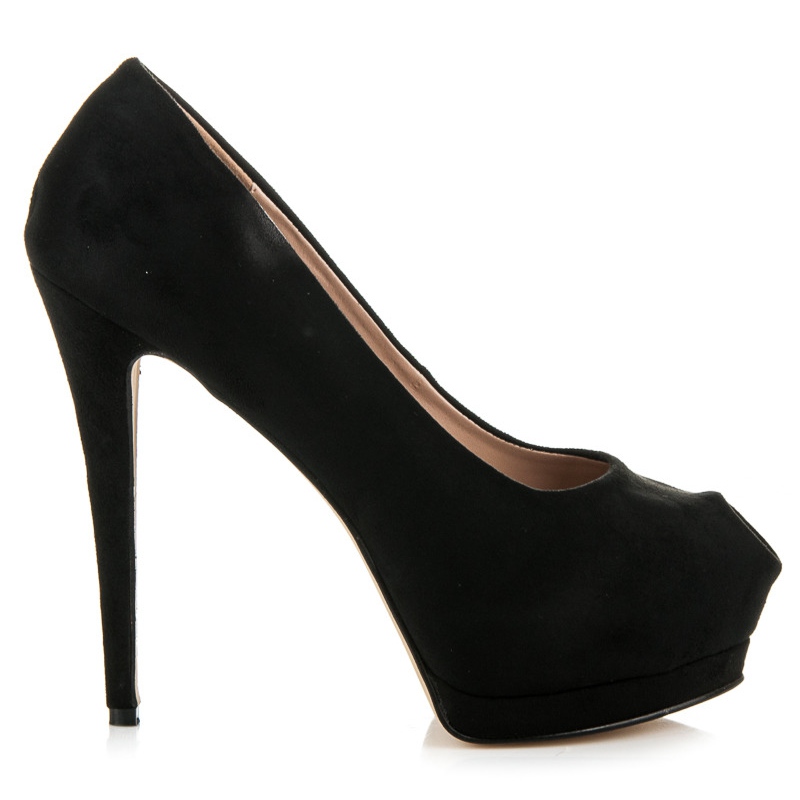 Apresentamos elegantes saltos altos pretos abertos da marca Vices, que são o complemento perfeito para qualquer estilo. Estes sapatos de camurça combinam o clássico com um toque de modernidade, tornando-os um elemento essencial no guarda-roupa de qualquer mulher.