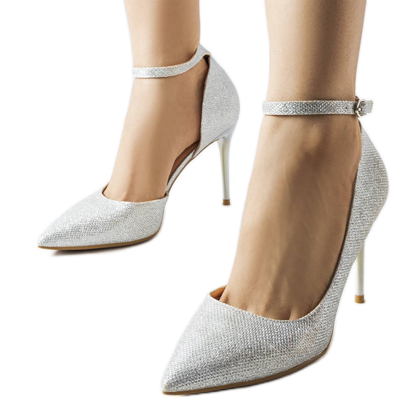 Criados a pensar nas tendências contemporâneas, estes saltos altos com brilho prateado são uma resposta às necessidades das mulheres que procuram um calçado confortável e ao mesmo tempo incrivelmente deslumbrante. Adaptam-se perfeitamente ao pé graças à fivela ajustável, garantindo conforto durante toda a noite. Um salto alto e elegante de 9,5 cm não é apenas uma garantia de adicionar alguns centímetros de altura, mas também uma oportunidade de emagrecer opticamente a figura.