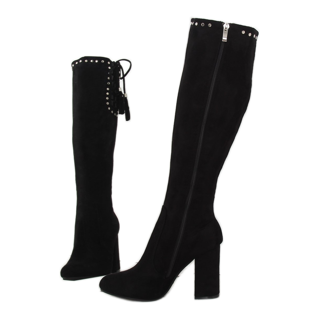Descubra o estilo clássico e o conforto num dos últimos modelos de botas de salto alto! Estas elegantes botas pretas confeccionadas em camurça ecológica de alta qualidade são a escolha perfeita para mulheres que valorizam a aparência moderna e o conforto.